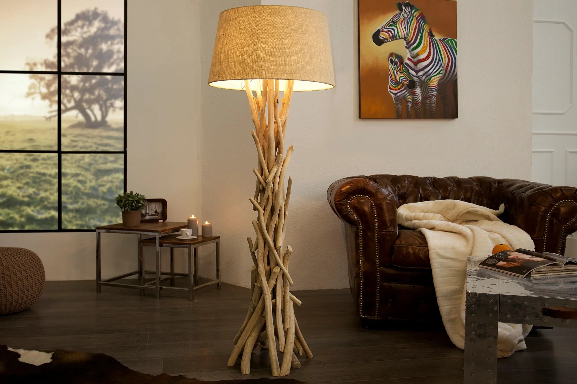Transform your home with the Wild Nature driftwood floor lamp, where natural craftsmanship meets modern style for a welcoming and stylish atmosphere.
