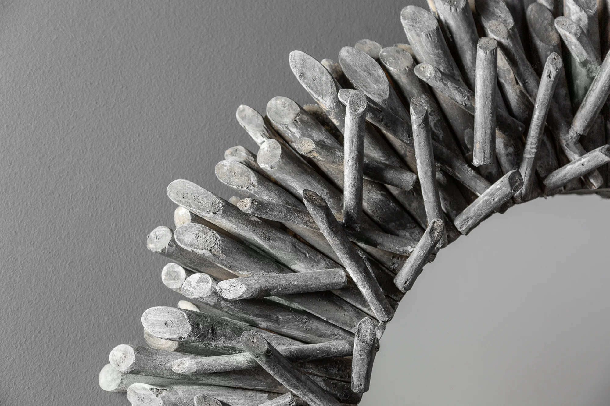 - Handcrafted teak wood mirror with a distinctive driftwood frame