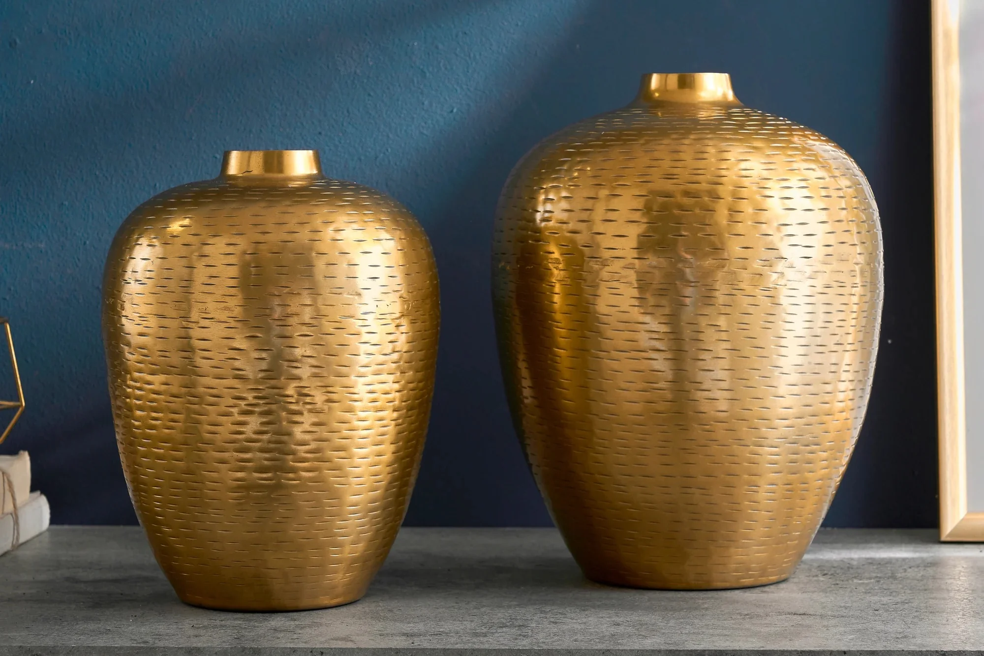 - Set of two handcrafted gold vases with a hammered finish