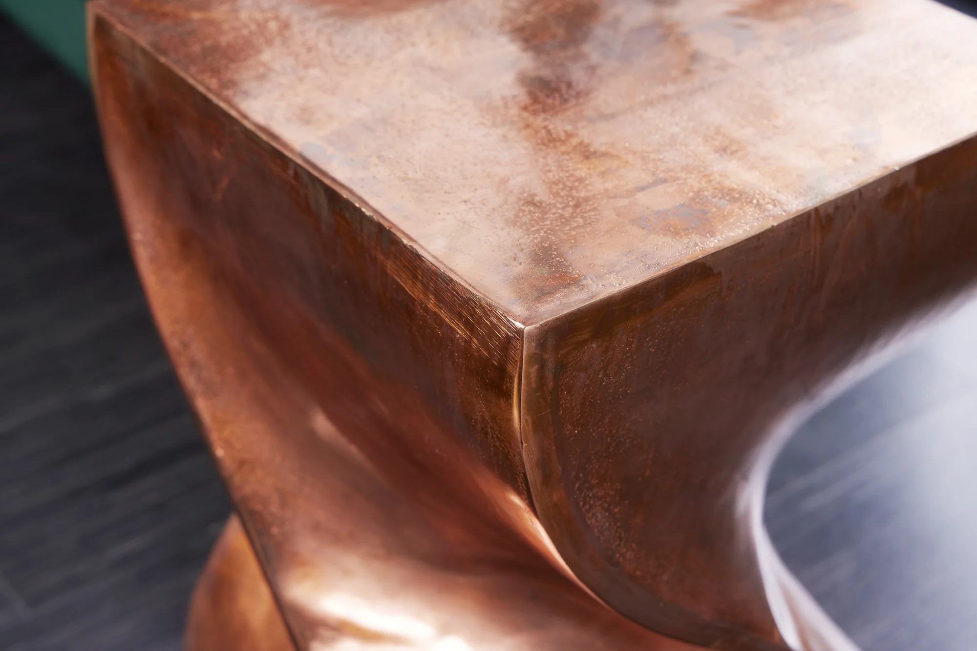 Compact and versatile, the Twist table is perfect for use as a side table, nightstand, or decorative accent. Its intricate design makes it a standout piece, whether placed in a living room, bedroom, or hallway. The flamed copper finish creates a dynamic visual effect, complementing contemporary, rustic, and eclectic interiors.